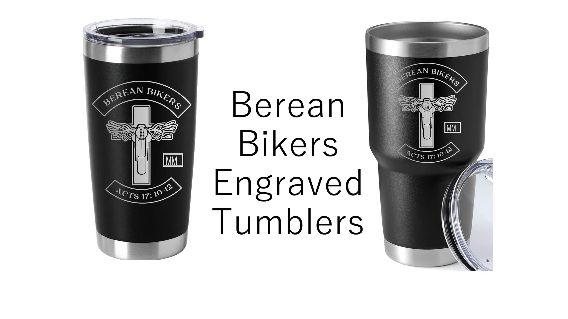 Ride with pride using these custom Berean Bikers Ministry engraved tumblers—the perfect way to show your faith and support for the community. Each tumbler features the ministry's iconic logo and can be personalized with your name for a truly unique touch. Available in multiple sizes and colors to match your style and needs, these durable tumblers keep your beverages at the ideal temperature whether you're on the road or at home.